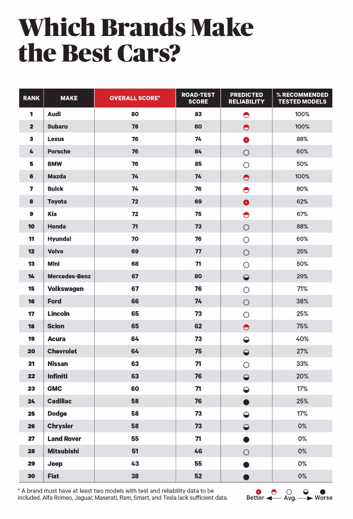 Best representation descriptions: Consumer Reports Cars 2016